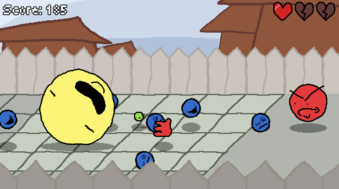 Those annoying circular FREAKS are coalescing at YOUR lovely town! Use your big ol' fist to beat these wackos up and keep them from wreckin' the place! The more you beat 'em up and toss 'em around the higher the score you'll get! Smack 'em, toss 'em WHO CARES! GET THEM OUTTA HERE!